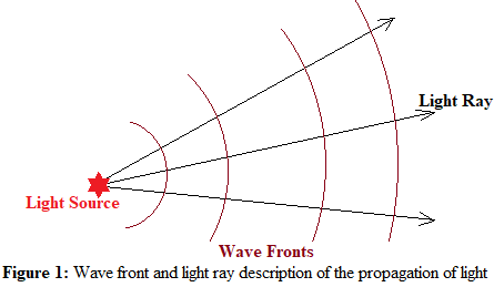 Often, the concept of a wave front is used to describe wave/light propagation. A wave front can be defined as the locus of all