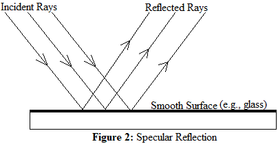 A light wave incident on a plane surface will "bounce" away from the surface in such a away that depends on the nature of the plane surface. The "bouncing" of light from the plane surface is technically reffered to as reflection. If the surface is such that it is very very smooth, the rays falling on it are all reflected in a definite direction: this type of reflection is called specular reflection.