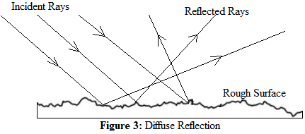If the surface is such that it is very rough then the incident rays are reflected in different directions. Such reflection is reffered to as diffuse reflection. Most objects in our environment are visible to us because they diffusely reflected light rays falling on them.