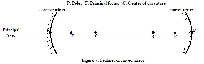 The features of curved mirrors are shown on Figure 7 and enumerated below: