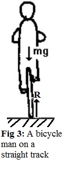 stand upright, as shown in Figure 3, the center of mass weight mg, is directly balanced by the reaction R, on the road, that is, R = mg,