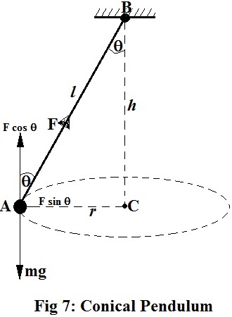 A conical pendulum is a pendulum that swings in a horizontal circle, as shown in Figure 7. Unlike the simple pendulum that oscilates in a vertical circular arc, conical pendulum always swings in a