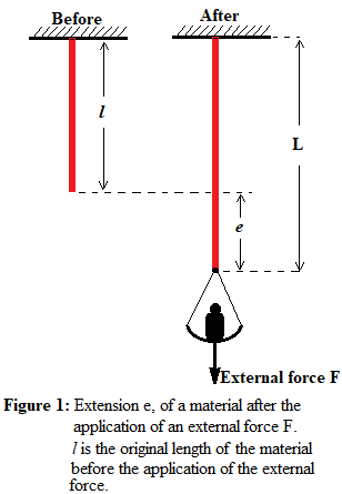 is not very large, such that after the removal of the external force, the extended material return to its original shape/length, then the external force is directly proportional to the extension, that is,
