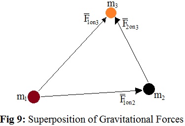 Gravitational forces combine vectorially. If each of two masses exerts a force on a third, the total force on the third mass is the vector sum of the individual forces of the first two. This is called the principle of superposition of forces